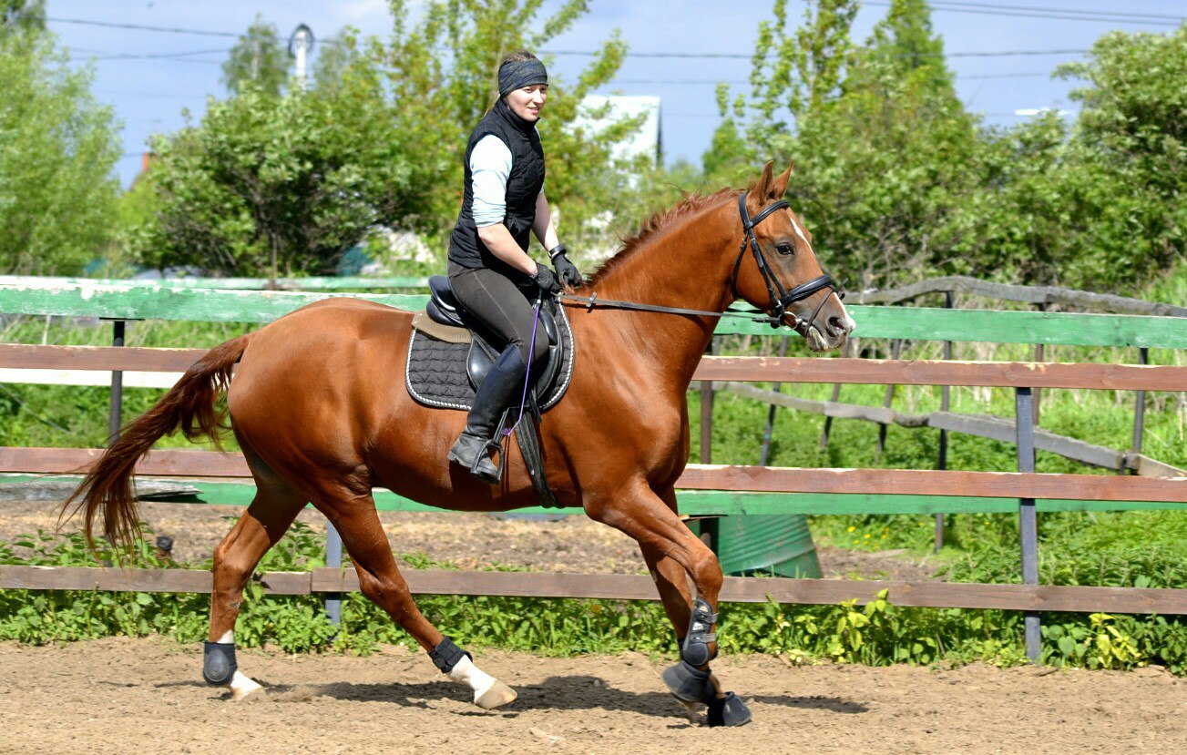 Прогулка гнедая лошадь