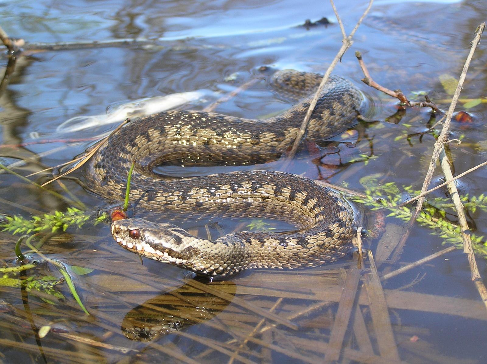 Степная гадюка плавает
