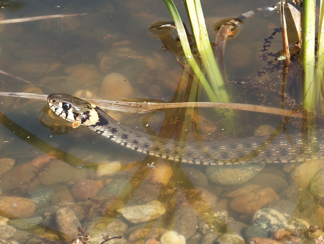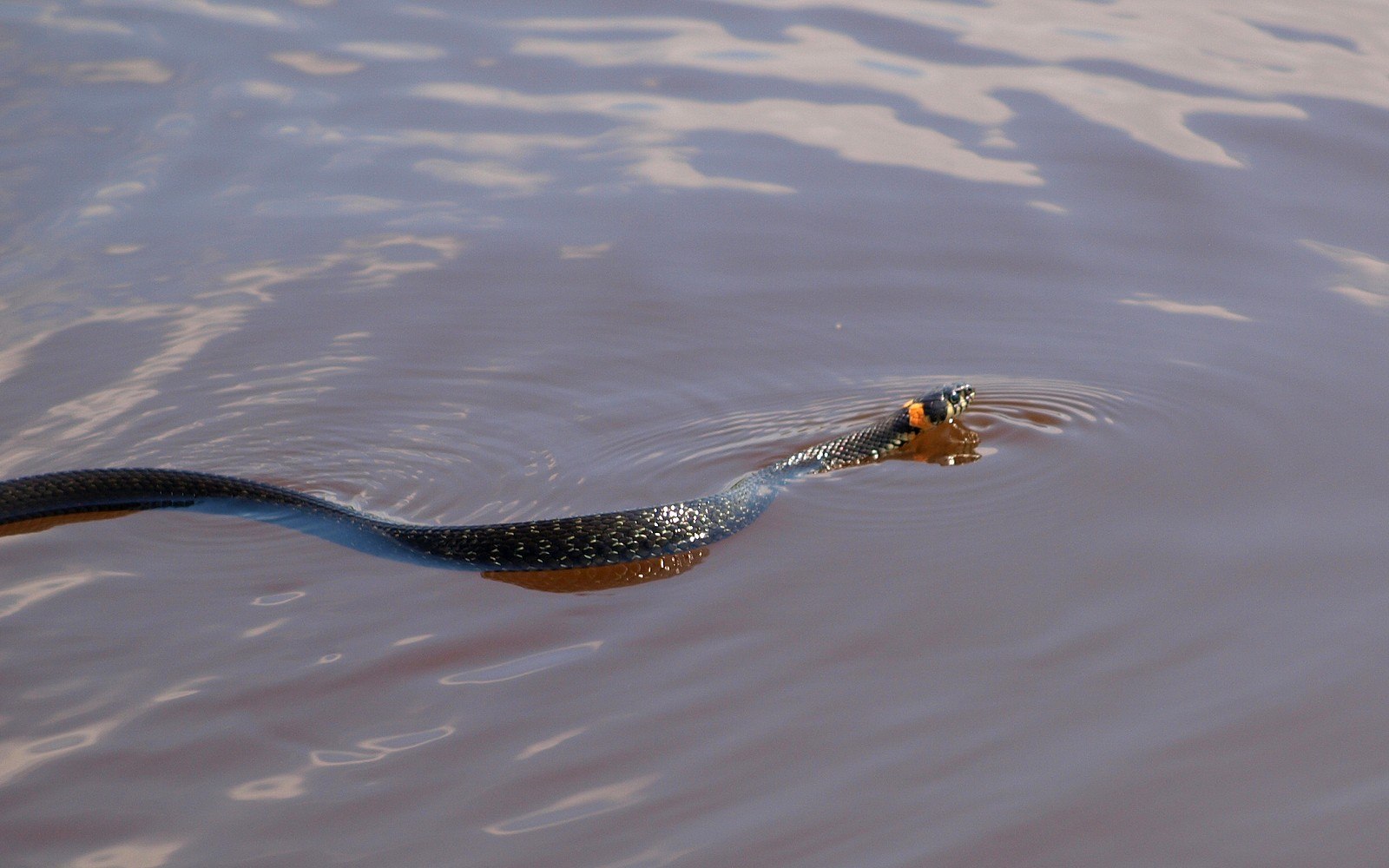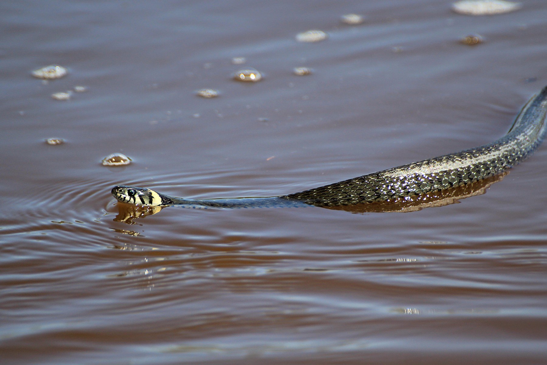 Уж обыкновенный плавает
