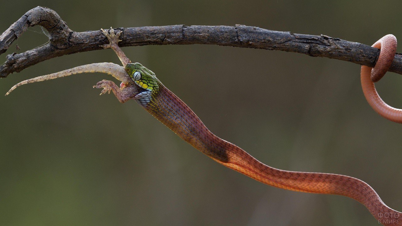 Змея свисает с дерева