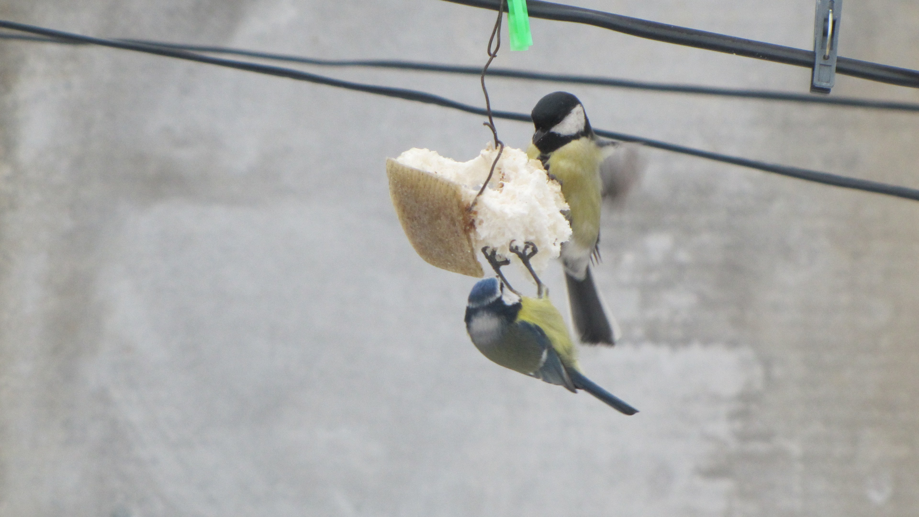 Синица лазоревка клюёт синиц