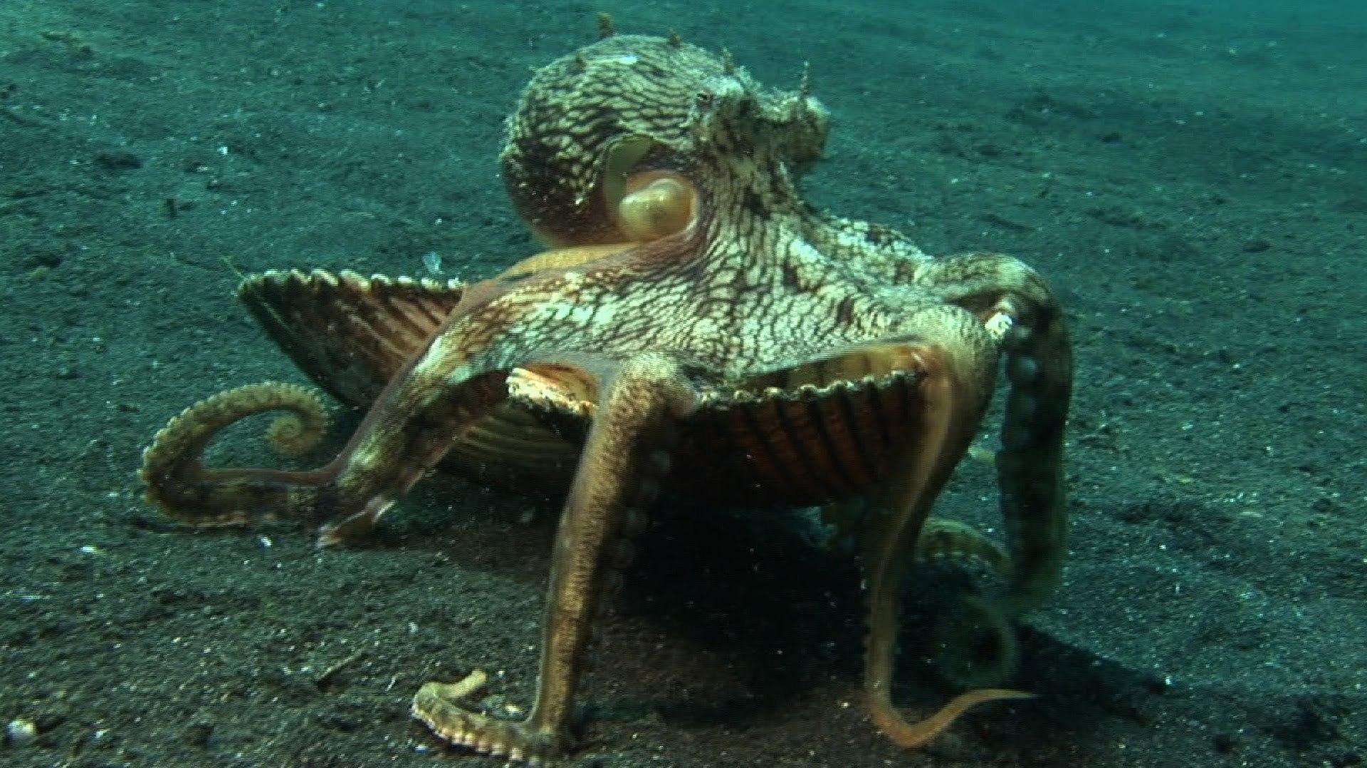 Осьминог прячется