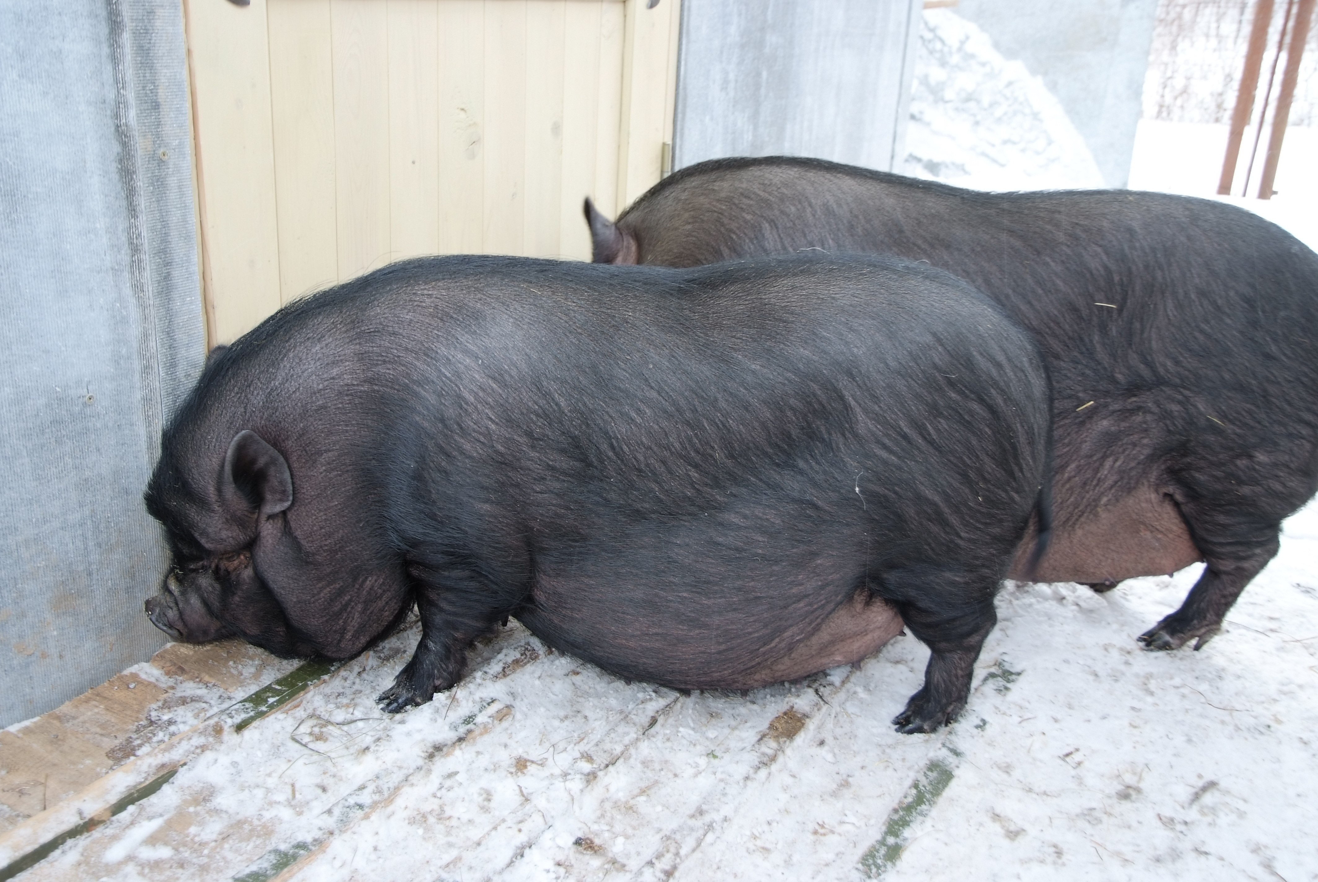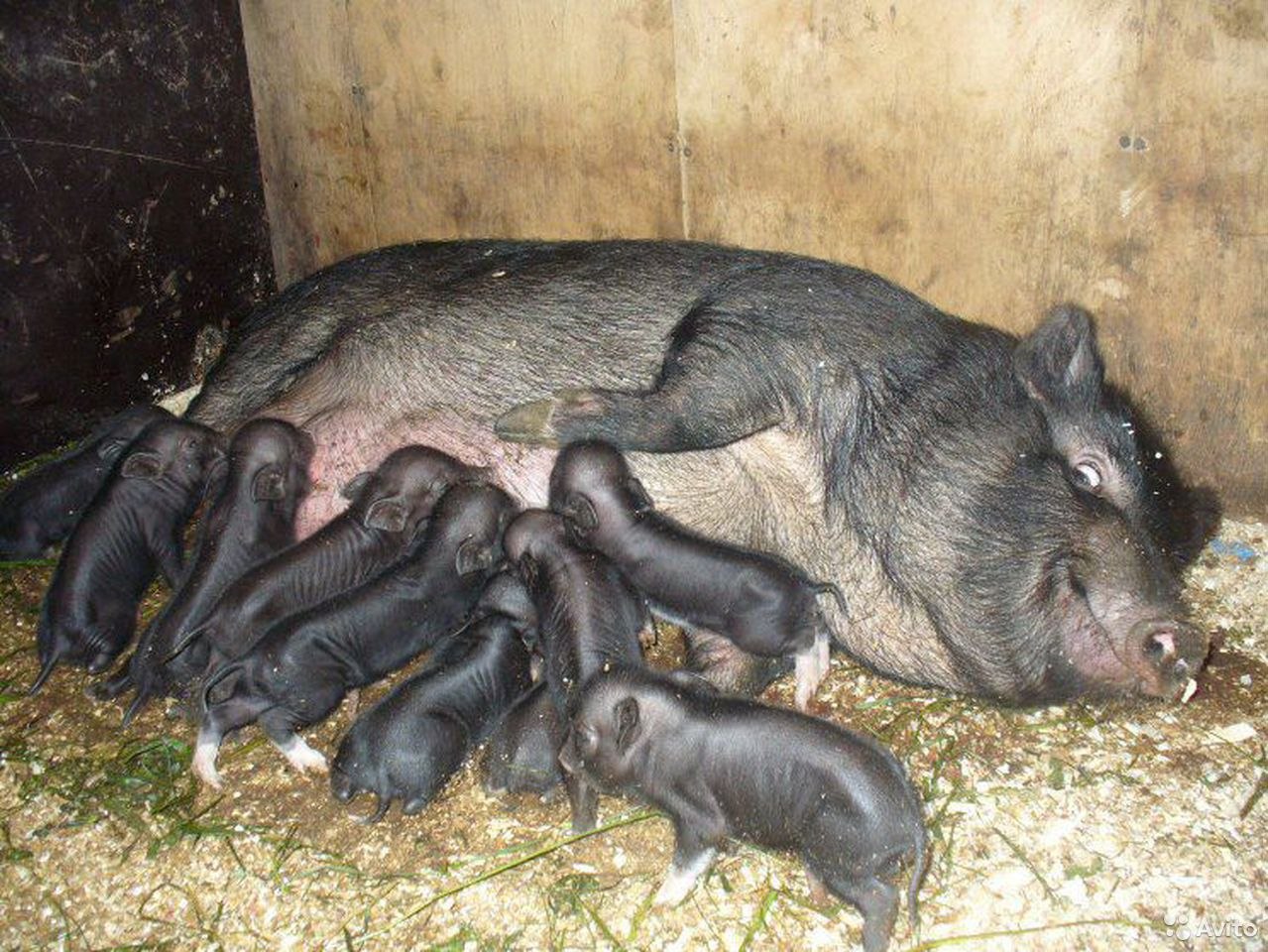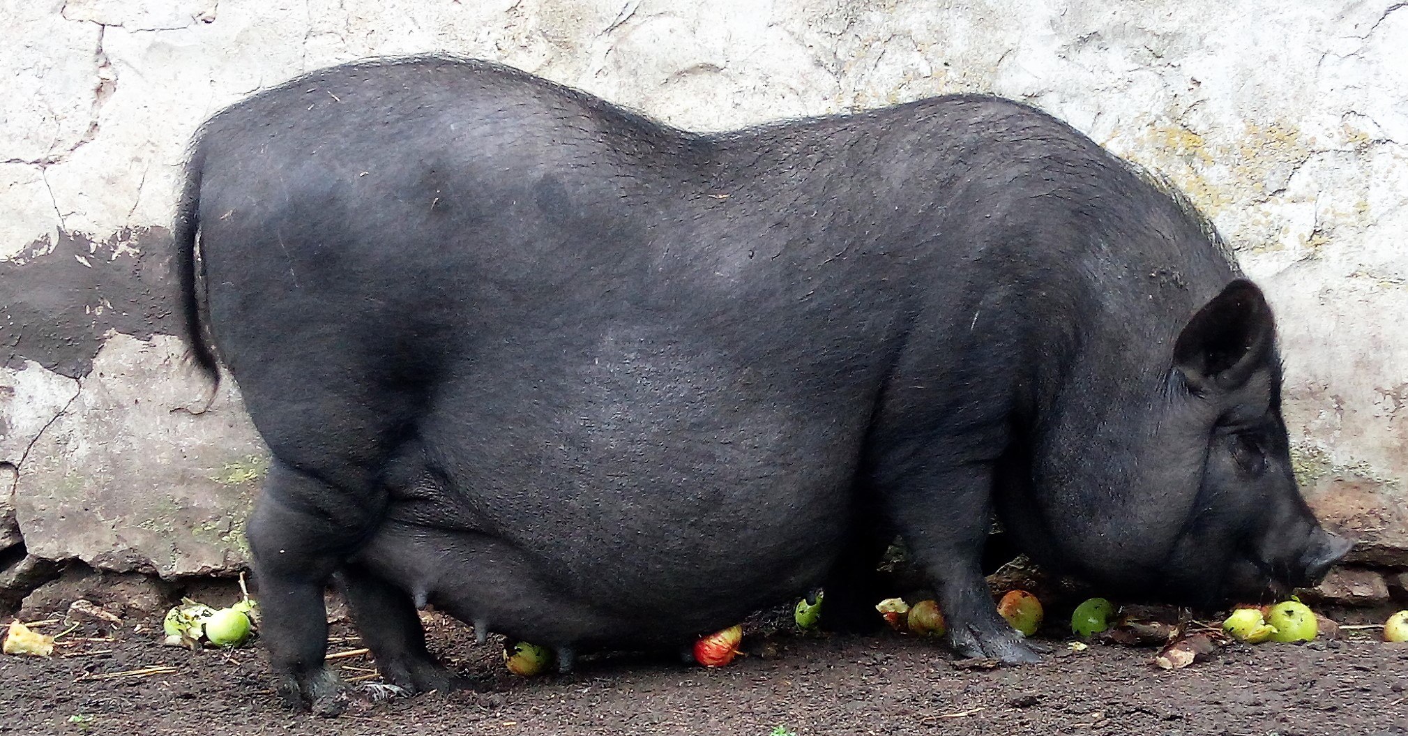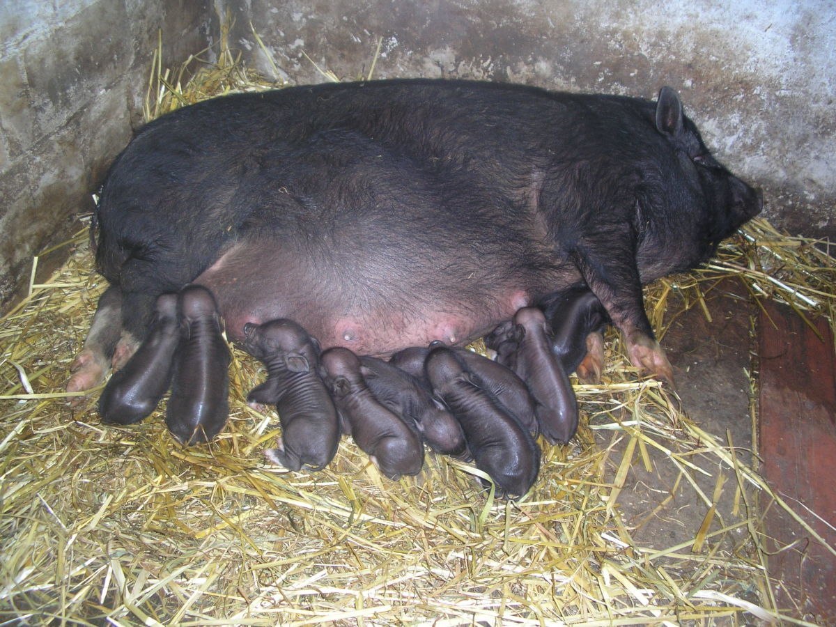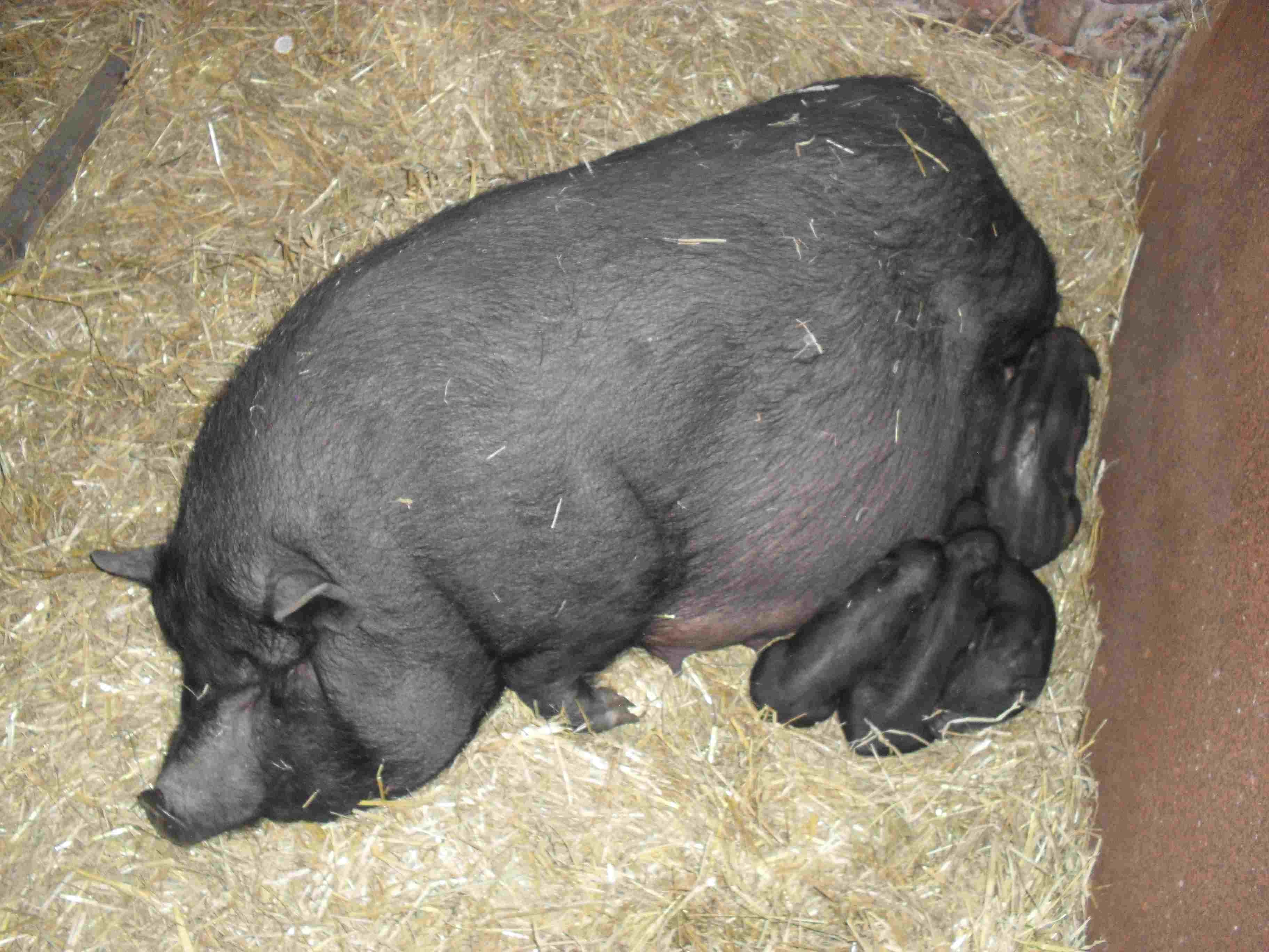 Черная вислобрюхая свинья
