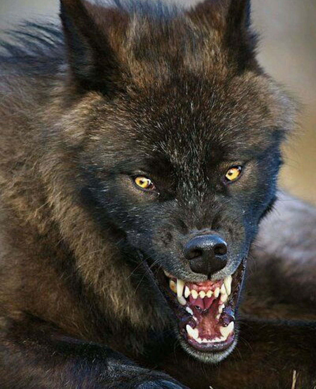 Чёрный волк оскал