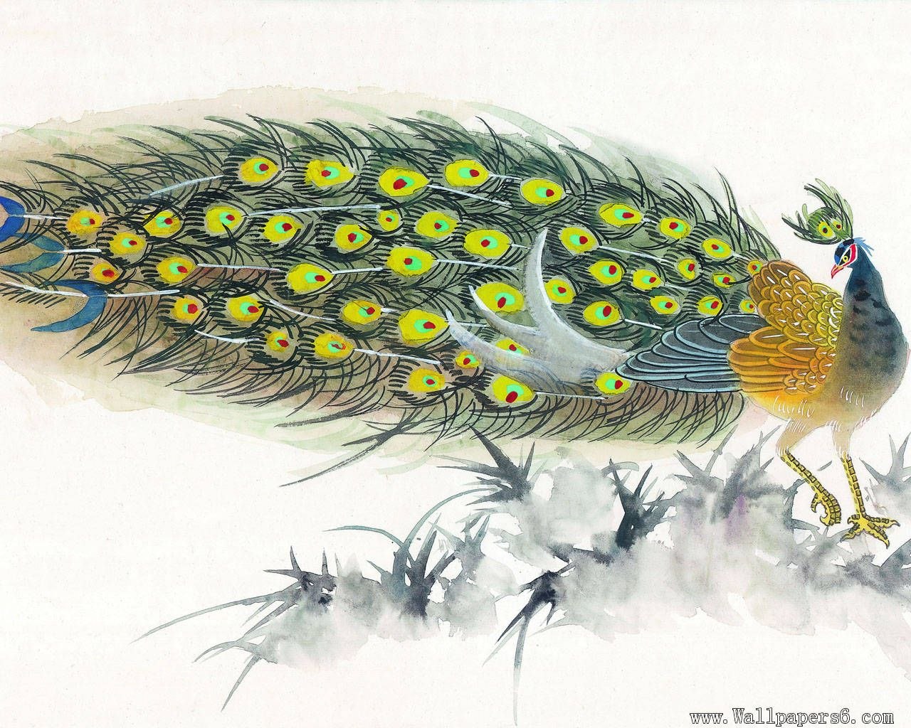 Павлин Феникс акварель