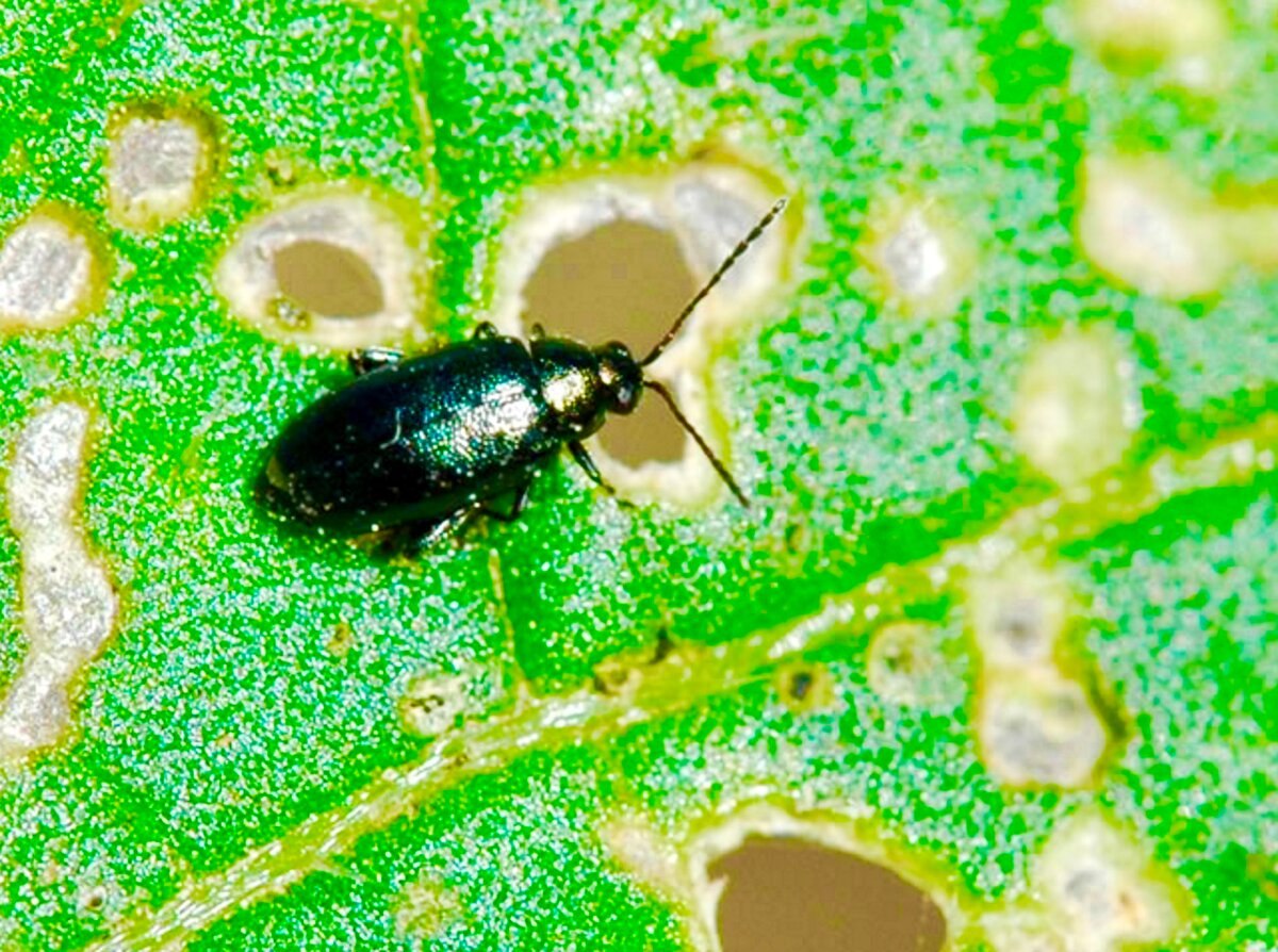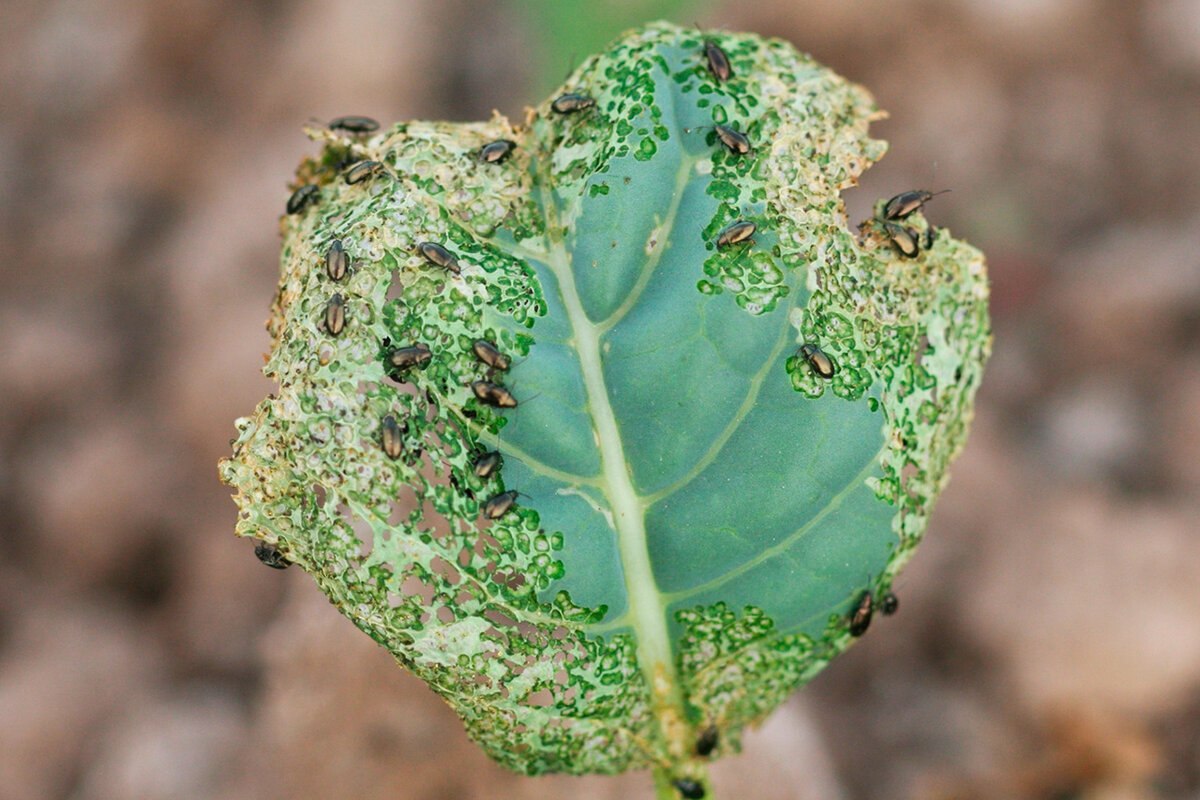 Крестоцветная блошка на капусте