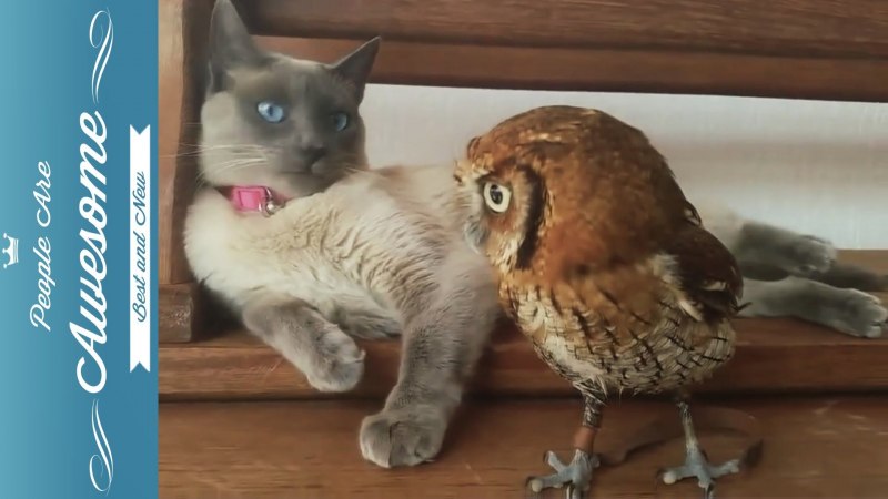 Сова и кот гиф