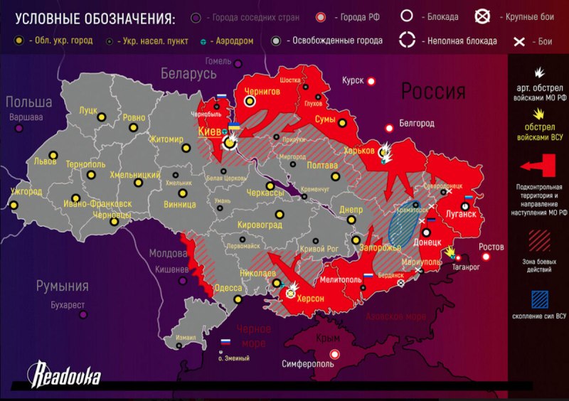 Карта боевых действий на Украине на апрель 2022 года