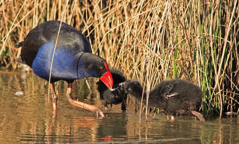 Малая султанка с птенцами